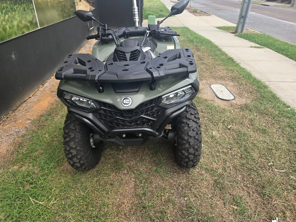 2025 CF Moto CForce 520 Base (NON EPS)^^Offering outstanding value for riders who want a capable mid-size ATV without stretching the budget. Built to handle work during the week and adventure on the weekend, the CForce 520 has earned a reputation for reliability, comfort and serious bang for buck performance. Powered by a responsive 495cc single cylinder engine, the CForce 520 delivers strong low-down torque that?s ideal for towing, property maintenance and trail riding. The automatic CVT transmission with high and low range makes it easy to operate for riders of all experience levels, while selectable 2WD and 4WD with a locking front differential ensures you?ve got traction when the terrain gets challenging. Even without EPS, the steering remains predictable and solid, giving a direct and connected feel that many riders prefer. The independent suspension soaks up rough ground with ease, and the well-designed chassis provides a stable, confidence inspiring ride whether you?re carrying gear or navigating uneven tracks. Front and rear racks give you practical carrying capacity, and the strong towing capability makes it a dependable choice for farm work or recreational use. Hydraulic disc brakes all round provide reliable stopping power in all conditions.^^Located just 50 minutes from Brisbane's CBD. With the option for a 3-year parts and labour Mechanical Protection Plan with any Approved Used bike, a 49-point inspection and 2 days free exchange for peace of mind, there is no better place to buy a Learner Approved Motorcycle. So, take advantage of our competitive pricing and the largest range of Plus we can organise to have your bike delivered directly to your door anywhere in Australia through our dedicated motorcycle freighters. ^An Approved Used Bike is the best choice in Australia for your next bike.^Why buy elsewhere?