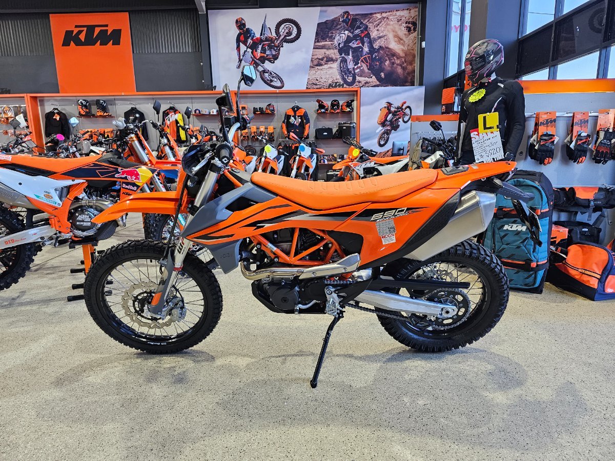 The 2024 KTM 690 Enduro R is the ultimate weapon for riders who crave adventure beyond the pavement. Powered by KTM?s legendary 693cc LC4 single-cylinder engine, this lightweight beast blends cutting-edge technology with rugged, off-road performance ? and all the street-legal versatility you need to ride from your garage to the trailhead.^^Key Features:^^693cc LC4 Engine: Punchy torque and smooth power delivery from the most powerful production single-cylinder on the market.^^Ride-by-Wire Throttle & Multiple Ride Modes: Switch between Street and Offroad modes for perfectly tailored power in any terrain.^^Quickshifter+: Seamless up and down clutchless gear changes for maximum control and performance.^^Fully Adjustable WP XPLOR Suspension: Long-travel front and rear suspension handles the roughest terrain with confidence and comfort.