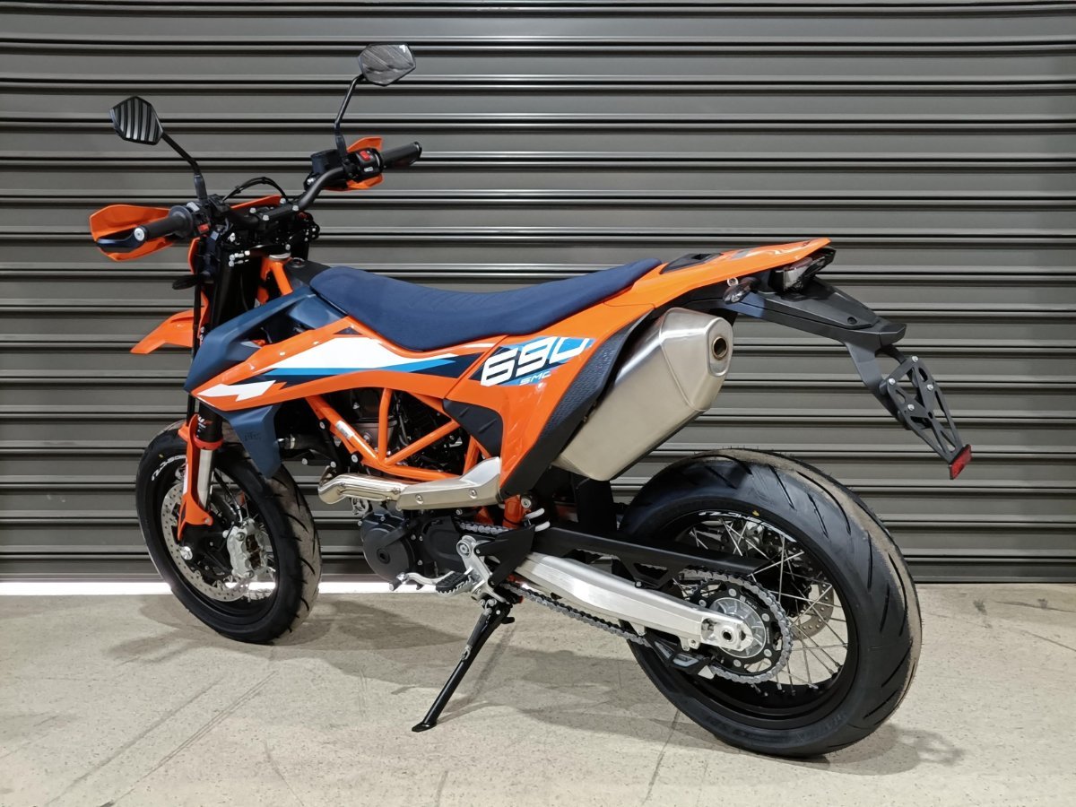 2024 KTM 690 SMC R is the ultimate street-legal supermoto machine, built to dominate twisty mountain roads, tight urban corners, and everything in between. With race-proven performance, cutting-edge electronics, and aggressive styling, the 690 SMC R delivers unmatched agility and adrenaline in a class of its own.^^Key Features:^? LC4 Powerhouse Engine:^Legendary 693cc single-cylinder engine with advanced ride-by-wire technology delivers explosive torque, razor-sharp throttle response, and thrilling performance.^^?? Advanced Electronics Package:^Equipped with Cornering ABS, Supermoto Mode, lean-sensitive traction control, Quickshifter+ (up/down), and ride modes ? making every ride safer and more dynamic.^^? Premium WP Suspension:^Fully adjustable WP APEX suspension front and rear ensures confidence and comfort across pavement or rougher urban terrain.^^? Chromoly Trellis Frame & Lightweight Build:^Nimble handling with a high-strength steel frame and light overall weight ? made to carve corners with surgical precision.