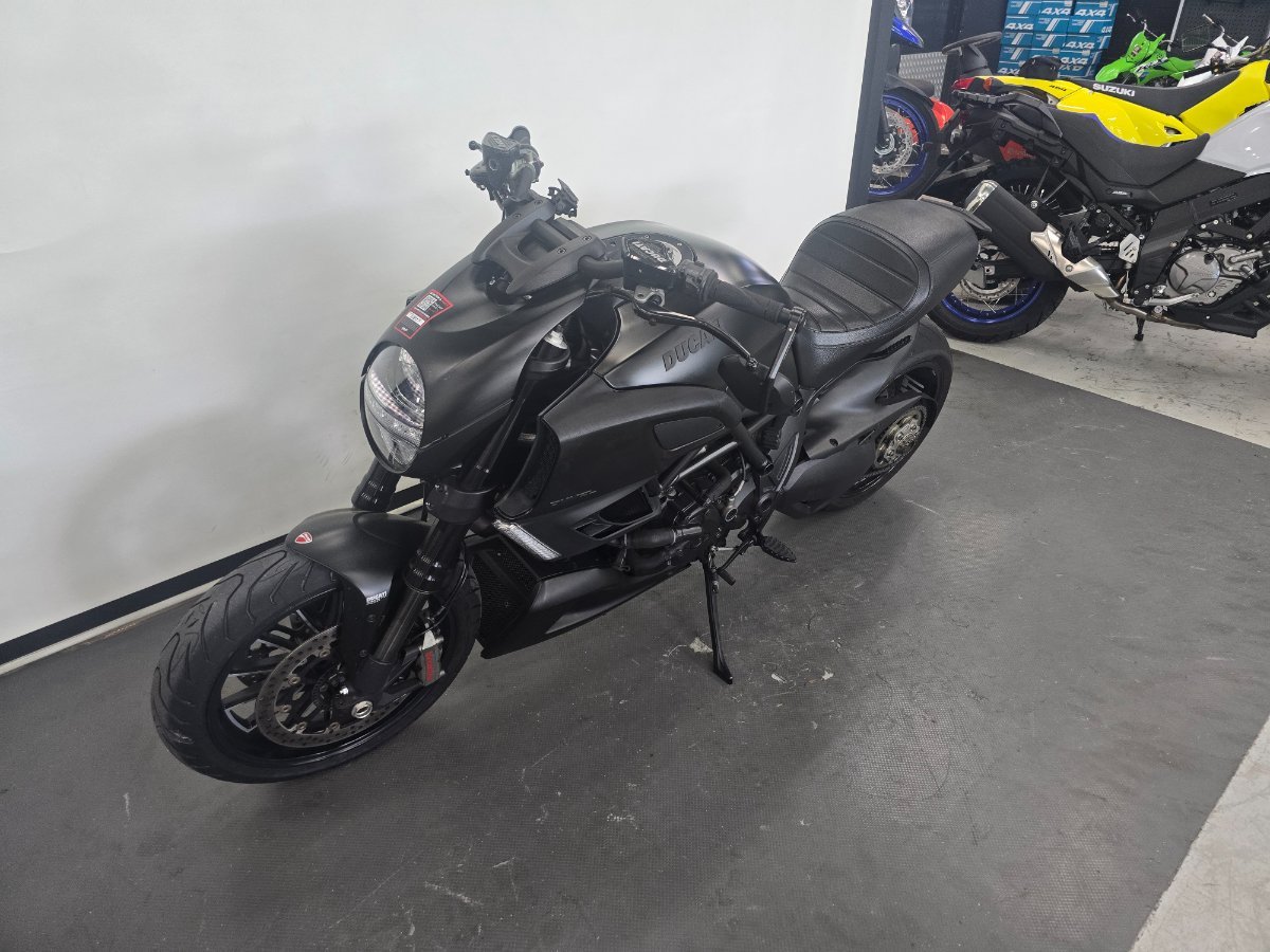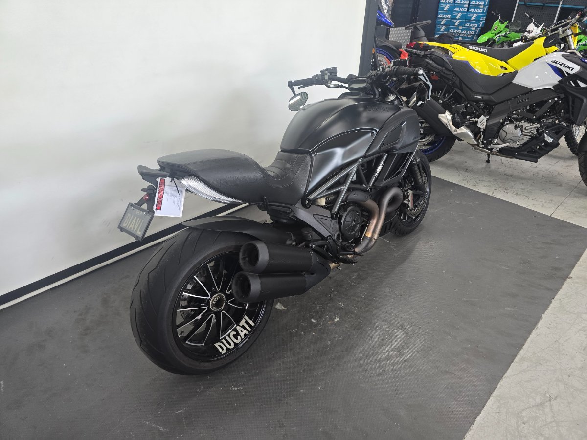 2013 Ducati Diavel^^Striking performance cruiser with personality to spare. This Diavel turns heads every time it rolls up thanks to its raw, muscular stance and the perfect finishing touch: a personalised number plate, D1AVL, that matches the bike beautifully. The bike currently wears neat bar-end mirrors for a clean, modern look, and the original mirrors are included so you get the best of both worlds. Comes with the full set of books and a spare red key ? the dealer key that allows the fob to be re-coded if it?s ever lost ? giving you practical peace of mind and making ownership simple. It?s been well looked after, presented in a condition that reflects careful use and sensible upkeep. The Diavel?s characterful engine, comfortable riding ergonomics for longer runs, and unmistakable Ducati styling make it an excellent choice for someone who wants a high-quality cruiser with sports-bike DNA.^^Located just 50 minutes from Brisbane's CBD. With the option for a 3-year parts and labour Mechanical Protection Plan with any Approved Used bike, a 49-point inspection and 2 days free exchange for peace of mind, there is no better place to buy a Used Bike in Australia. plus access to Australia?s largest resource of Motorcycle Finance ,with fast, friendly, personal service either in our stores , from