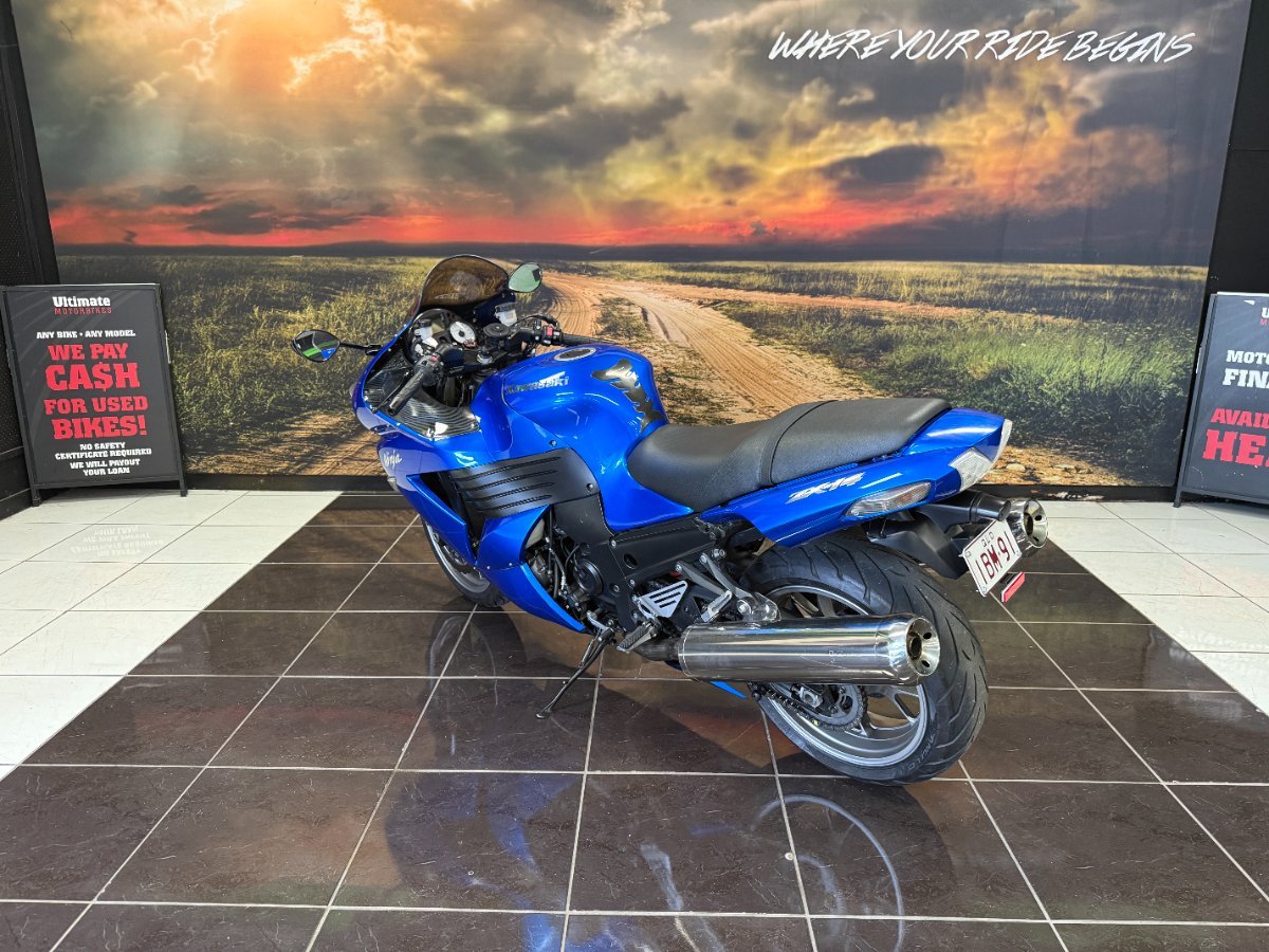 The 2006 Kawasaki Ninja ZX-14 is a high-performance sportbike, often called a hyperbike, featuring a 1,352cc four-cylinder engine that delivers roughly 190 hp and 153 Nm (113 lb-ft) of torque. Renowned for its immense acceleration, comfortable, upright, and large-framed design, it serves as a versatile machine for both track-level speeds and long-distance touring. fitted with mra dark screen 1 inch bar risers for comfort and has bean tuned by pro cycle dyno brisbane .With up to a 3 year warranty and the most competitive finance and insurance packages ^available, as Australia's largest motorcycle retailer no one makes it easier to purchase a used ^Motorcycle. Plus we can organise to have your bike delivered directly to your door anywhere ^in Australia through our dedicated motorcycle freighters.
